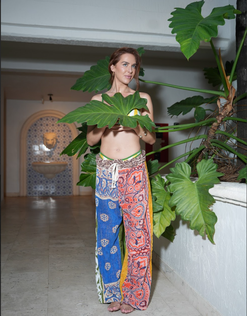 These ultra-comfy pants are upcycled from Mary's personal collection of vintage towels sourced globally. Each pair is a unique, one-of-a-kind piece, handmade domestically. With a free size design, they comfortably fit women’s sizes S-L/XL and men’s S-M/L. On a 5’9” frame, they have a relaxed, baggy fit as shown.