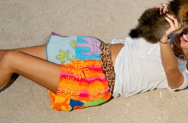These ultra-comfy towel shorts are upcycled from Mary's personal collection of vintage towels sourced globally. Each pair is a unique, one-of-a-kind garment, handmade domestically. Like our towel pants, the more you size up, the baggier the fit.